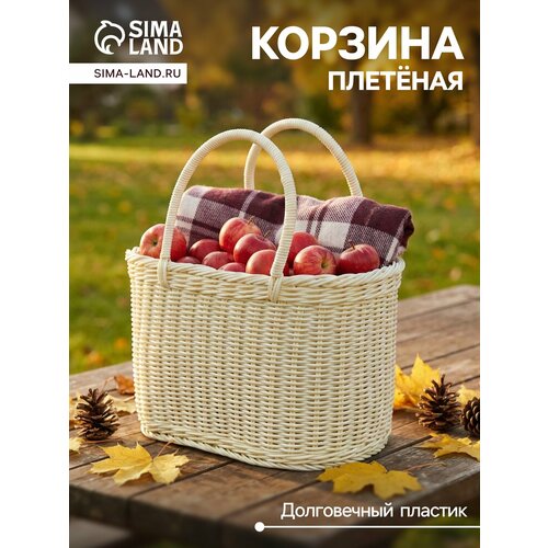 - Прочная комбинация материалов: пластиковое плетение сохраняет гибкость и устойчиво к влаге. Ручка высотой 17 см надёжно зафиксирована.