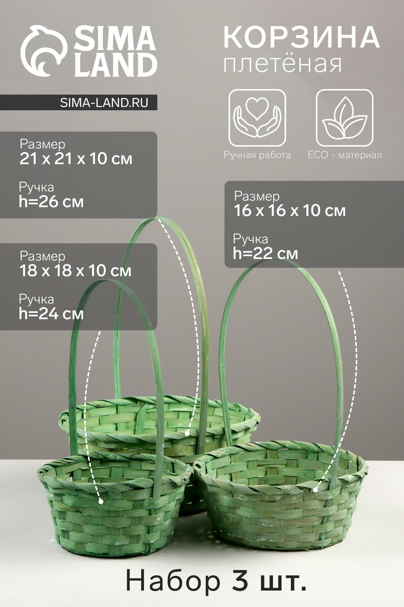 Корзина плетёная для хранения, бамбуковая, круглая, зелёная, набор 3 шт.: сравнение цен, характеристики, фото, актуальное наличие и цены.