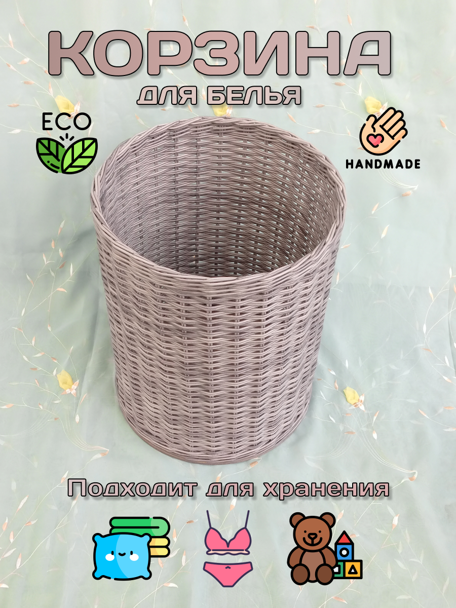 Плетёная корзина из бумажной лозы – стильное и удобное решение для хранения белья, игрушек и других вещей. Изготовленная из экологически чистого материала, она прочна, легка и долговечна. Её дизайн позволяет использовать корзину как в спальне, так и в детской комнате или на кухне, добавляя уют и организованность пространству. Дно выполнено из фанеры, на котором прикреплены фетровые накладки для устойчивости без скольжения. Эта корзина станет незаменимым помощником в уборке и создании порядка в доме