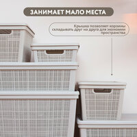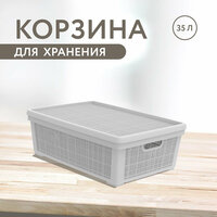 Корзина плетёная для хранения с крышкой Лён, 35 л, 56,8×40×20,3 см, цвет серый: сравнение цен, характеристики, фото, актуальное наличие и цены.