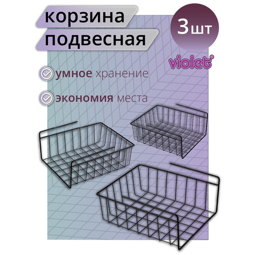 Подвесная корзина для дома - универсальный органайзер для хранения, дополнительная навесная полка в шкаф или на дверцу с креплением. Вы можете использовать навесную корзинку на кухне, в спальне, ванной, коридоре, гостиной, гардеробе, кладовке и в любом другом помещении. Универсальная корзина устанавливается в любой шкаф с полками, холодильник или вертикально навешивается на дверцу. Держатель рассчитан на толщину полки до 2 см. Вы можете хранить в металлической корзинке посуду, кухонные принадлежности, продукты, овощи, книги, постельное и нижнее белье, полотенца, вещи, бытовую химию и тд. Такой рейлинг – незаменимая вещь в каждом доме, он поможет создать систему хранения, навести порядок и разложить все вещи по полочкам. Размер подвесной полки 24 х 28 х 12 см, в наборе 3 шт, цвет черный. Такую корзинку с креплением из серии кухонные принадлежности ищут как: держатель для кухни / держатель для посуды, для кружек, губок / подвесная полка / органайзер для кухни / корзина для хранения / система хранения вещей / корзина в шкаф / подставка для крышек / корзинка органайзер / полка сетка / органайзер для холодильника.