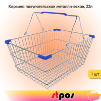 Корзина покупательская металлическая 22л, хром, Синие ручки и уголки, 22CR-BU: сравнение цен, характеристики, фото, актуальное наличие и цены.