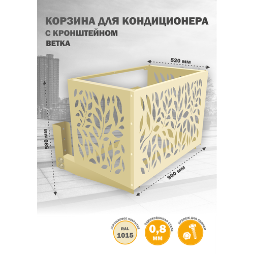 Фасадная корзина для кондиционера - это неотъемлемая часть современных зданий и квартир, представляет собой металлический ящик, предназначен для установки в качестве защитно-декоративного экрана для климатической техники. Панель изготовлена из качественных материалов, устойчивых к коррозии и воздействию солнца. Короб (ограждение, кожух, решетка) с П-образным усиленным кронштейном для наружного блока кондиционера. Корзина изготовлена из оцинкованной стали от 0,8 до 1,2мм. Кронштейн изготовлен из оцинкованной стали 2мм Порошковое покрытие Отсутствие сварки, соединение на болты.