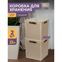 Купить Корзина с крышкой для хранения вещей Лофт 23л, набор 2шт, цвет латте / ящик пластиковый, коробка, контейнер с доставкой по всей России.