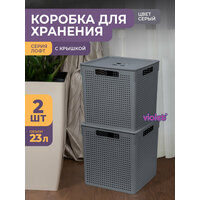 Купить Корзина с крышкой для хранения вещей Лофт 23л, набор 2шт, цвет серый / ящик пластиковый, коробка, контейнер с доставкой по всей России.