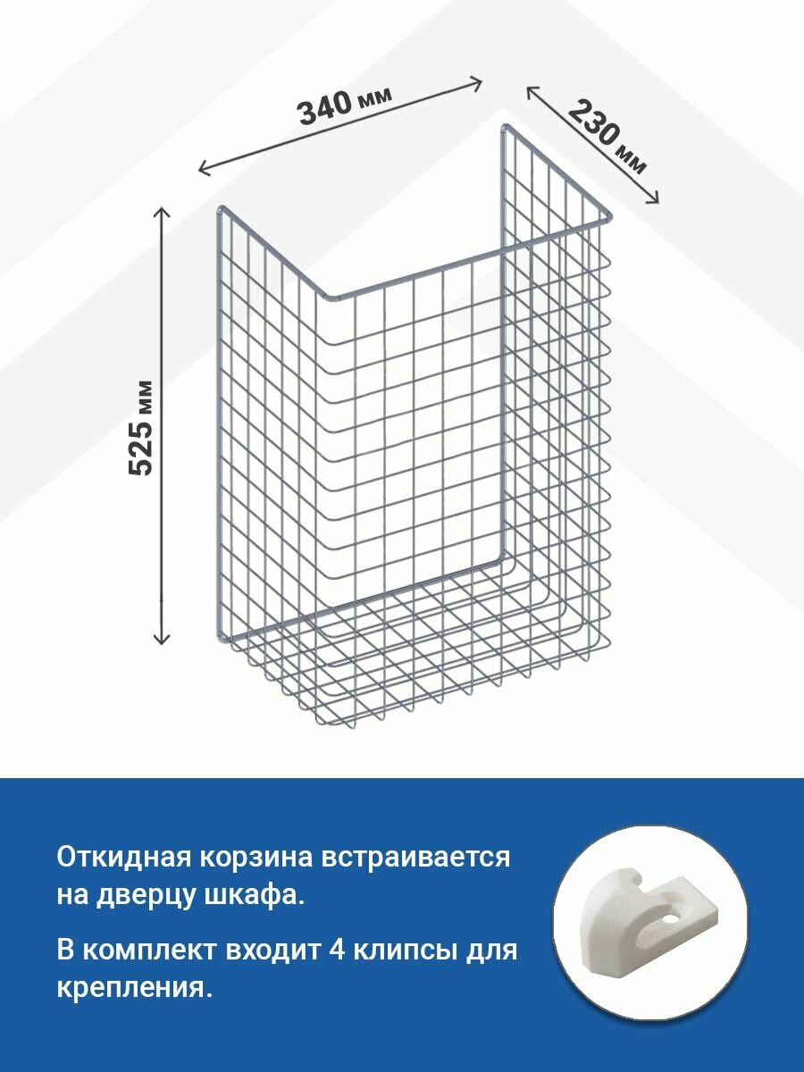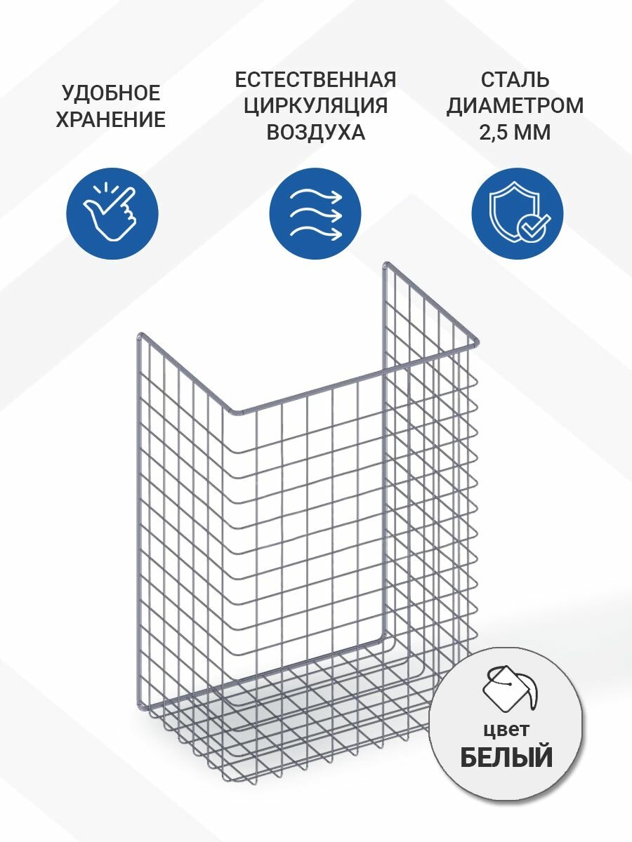 Корзина сетчатая для белья 340*525*230 мм, в базу 400 мм, белая + клипсы 4шт.: сравнение цен, характеристики, фото, актуальное наличие и цены.