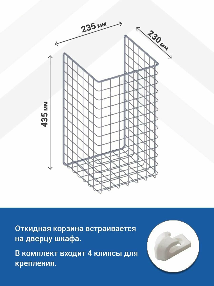 Корзина сетчатая для хранения белья М300 235*435*230 мм, крепление к фасаду + клипсы 4шт. белая: сравнение цен, характеристики, фото, актуальное наличие и цены.