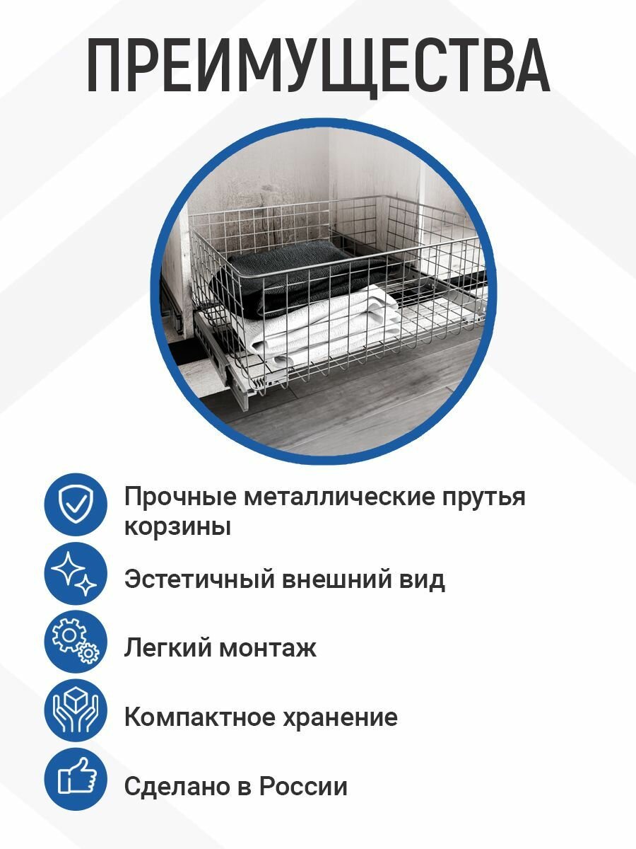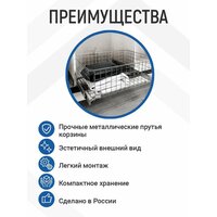 Сетчатая (сотовая) корзина КДМ. Предназначена для хранения вещей, аксессуаров и принадлежностей на кухне, в шкафах-купе или гардеробной. Крепления и направляющие в комплект не входят.