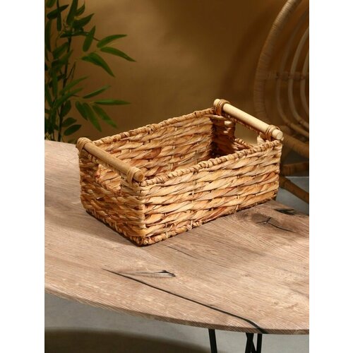 Создайте уют и порядок в вашем доме с помощью элегантных аксессуаров! Плетёная корзинка из водного гиацинта – идеальный выбор для хранения вещей в стиле вашего интерьера. Ее привлекательный бежевый цвет и прямоугольная форма гармонично впишутся в любую комнату, добавляя природные нотки в ваш интерьер. Природный материал: изготовленная из водного гиацинта, эта корзинка предлагает экологически чистый и органичный способ организации пространства. Материал придаёт изделию легкость и прочность, гарантируя долгий срок службы. Удобные размеры: длина 36 см, ширина 21 см и высота 15 см делают корзинку подходящей для самых разных изделий, от текстиля до игрушек и хозяйственных мелочей. Стиль и функциональность: благодаря лаконичному дизайну и натуральной текстуре корзина станет стильным акцентом в вашей гостиной, спальне или ванной комнате. Количество предметов: 1; Материал: Водный гиацинт, дерево;