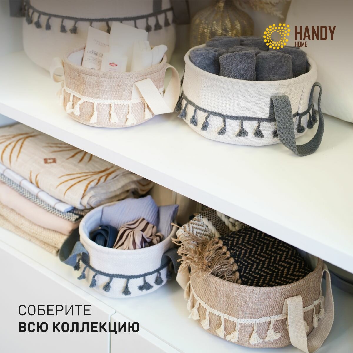 Каркас корзины для хранения металлический – она отлично держит форму. Круглые текстильные корзинки устойчивы и не деформируются со временем.