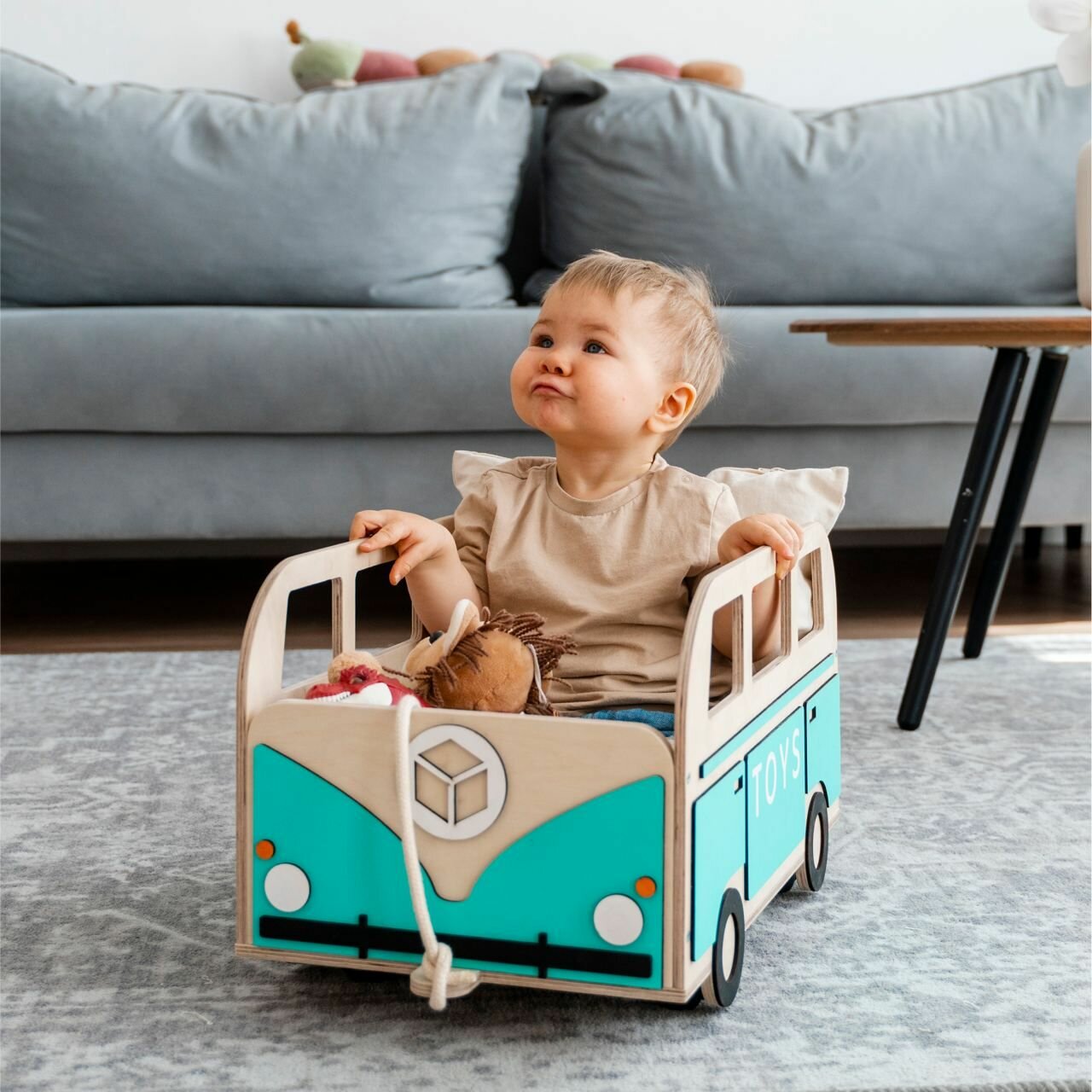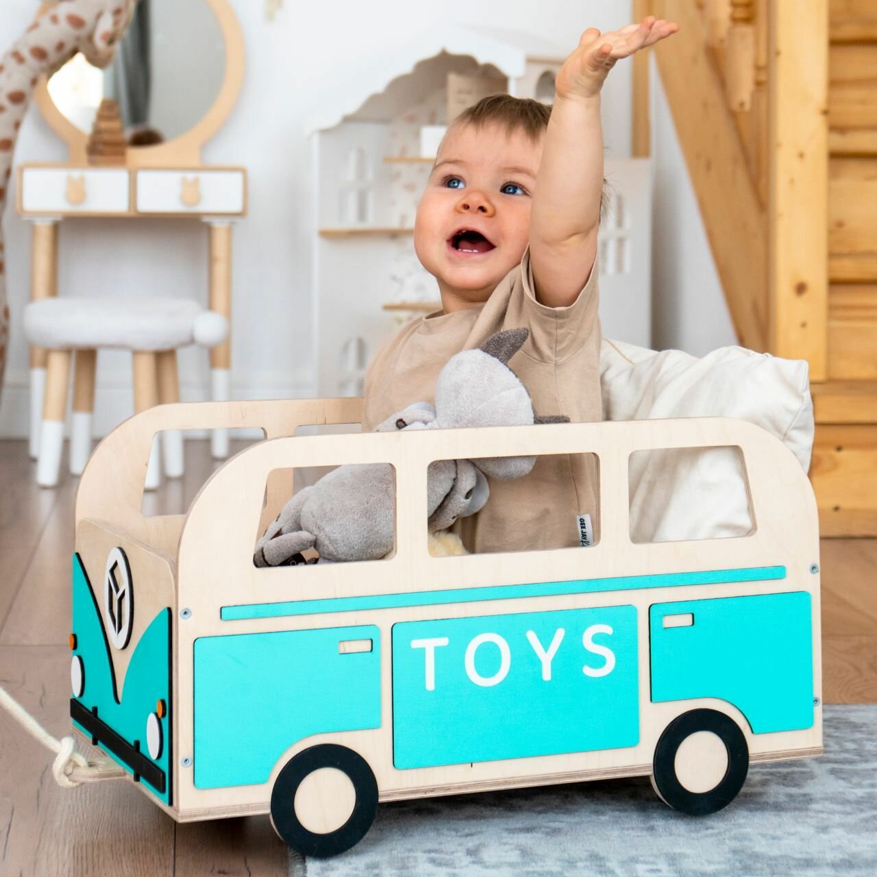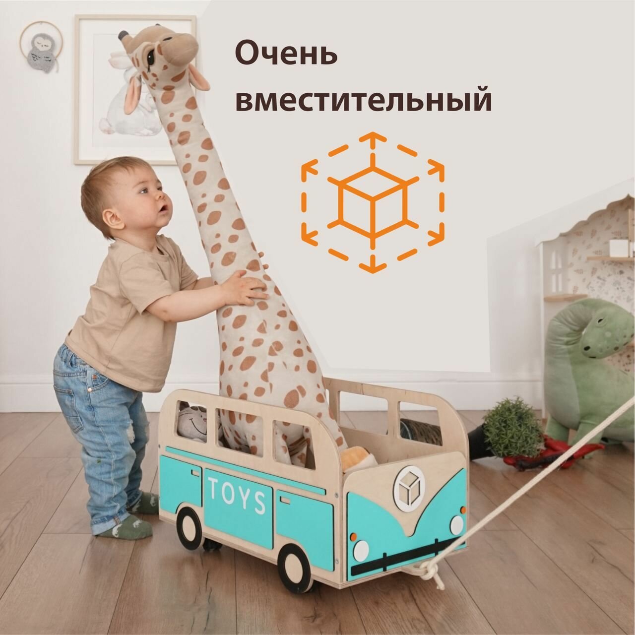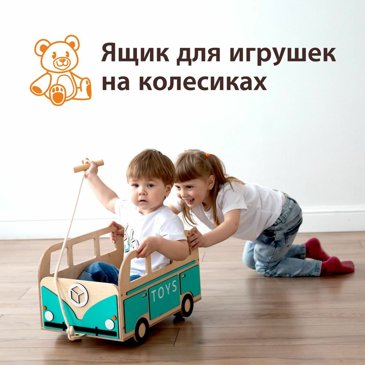 Корзина тележка ящик на колесах bykva для хранения игрушек, береза