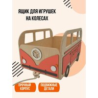 Корзина тележка ящик на колесах bykva для хранения игрушек, береза