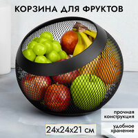 Корзина, ваза для фруктов, фруктовница 24х24х21 см El Casa Черная