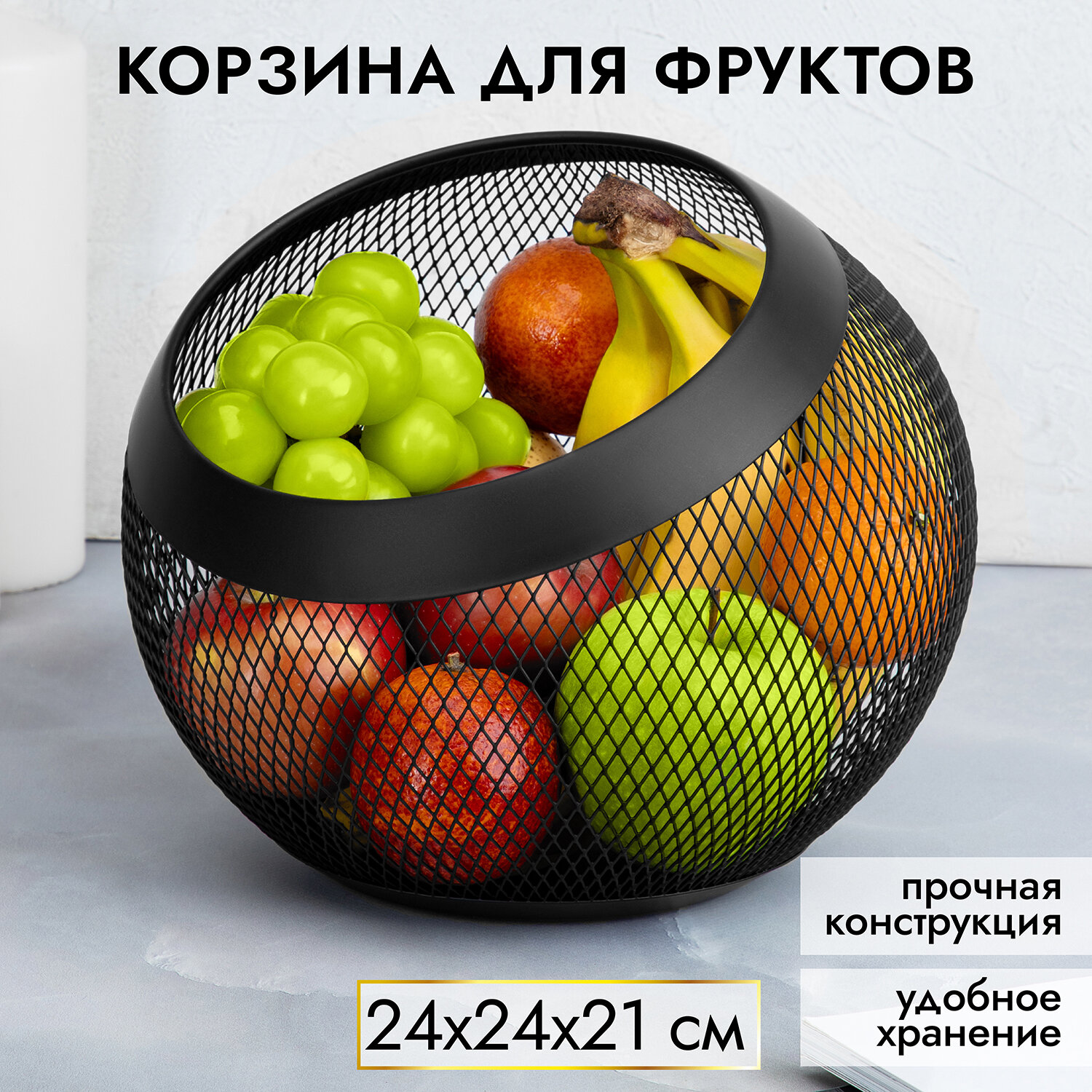 Корзина, ваза для фруктов, фруктовница 24х24х21 см El Casa Черная: сравнение цен, характеристики, фото, актуальное наличие и цены.