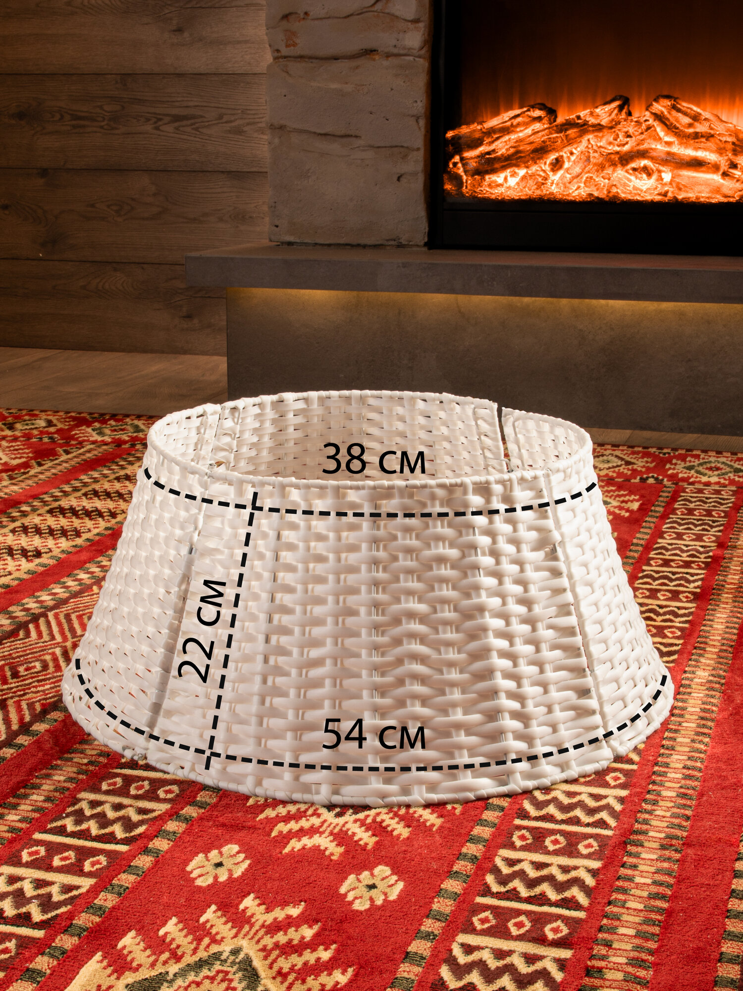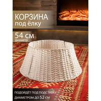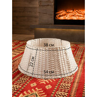 Корзина под елку из искусственного ротанга поможет скрыть подставку для елки вплоть до первых веток, придав всей композиции праздничный и завершенный вид. Плетеная корзина юбка диаметром 54 см подойдет для подставок диаметром до 52 см. Размеры: диаметр низа- 54 см, диаметр верха- 38 см, высота корзины-23 см. Цвет: белый. Установка плетеной корзины без дна не требует дополнительных усилий просто соедините 4 части конструкции между собой. Далее во внутрь корзины поместите подставку с собранными нижними ветками дерева и завершите сборку новогодней елочки. Стильная корзина для декорирования создаст неповторимый образ рождественской ели, который будет радовать вас своей оригинальностью. Ваше нарядное дерево станет настоящей изюминкой на Новый год. Такая корзина для елки также спрячет провода от гирлянд или ведро с водой для живой ели. Рядом с декоративной подставкой можно расположить любые новогодние украшения для дома. Корзина сделана из качественного пластика, ее можно протирать влажной тряпкой от пыли. Плетеная подставка корзина подходит для искусственных елок или живых любой высоты, но перед покупкой проверьте размер подставки вашей елки и подберите подходящий размер корзины среди нашего ассортимента. Чтобы ознакомиться с полной линейкой товаров, нажмите на логотип и перейдите в наш магазин.