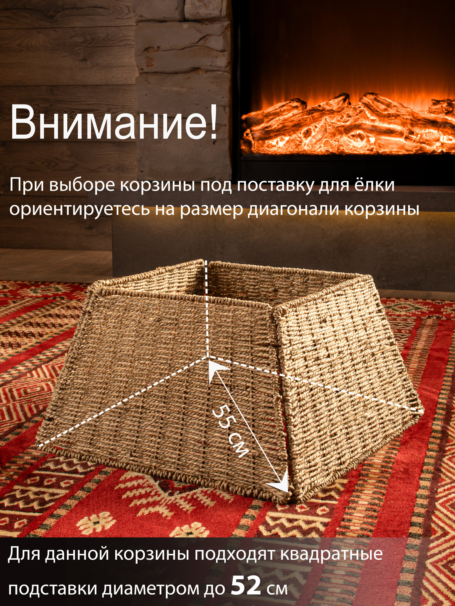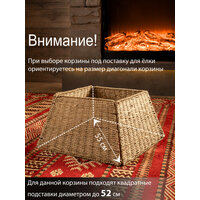 Как скрыть некрасивое основание искусственной елки? У нас есть решение! Круглая плетеная корзина-юбка не только стильный рождественский аксессуар, но и изысканное решение спрятать некрасивую основу у ели. Корзина-юбка имеет диаметр 39 см и подходит для подставок диаметром до 36 см. Ее размеры составляют: диаметр основания - 39 см, диаметр верхней части - 27 см, высота - 23 см. Цвет корзины — бежевый. Юбка для елки сделана из натуральных материалов и не взывает аллергии. Новогоднее украшение для дома отлично подойдет как для искусственных, так и для живых деревьев. Установка плетеной корзины без дна не требует дополнительных усилий просто соедините 4 части конструкции между собой. Затем разместите елку на подставке внутри корзины и наслаждайтесь её праздничным образом. Мы рекомендуем сначала установить корзину, а затем аккуратно поместить внутрь нее подставку с собранными нижними ветками. После этого завершите сборку елки. Так вы легко скроете основание и придадите всей конструкции нарядный вид. Плетеная подставка корзина для елки подходит для деревьев любой высоты, однако перед заказом убедитесь, что размеры подставки совпадают. Выберите подходящий вариант среди нашего ассортимента. Чтобы ознакомиться с полной линейкой товаров, нажмите на логотип и перейдите в наш магазин.