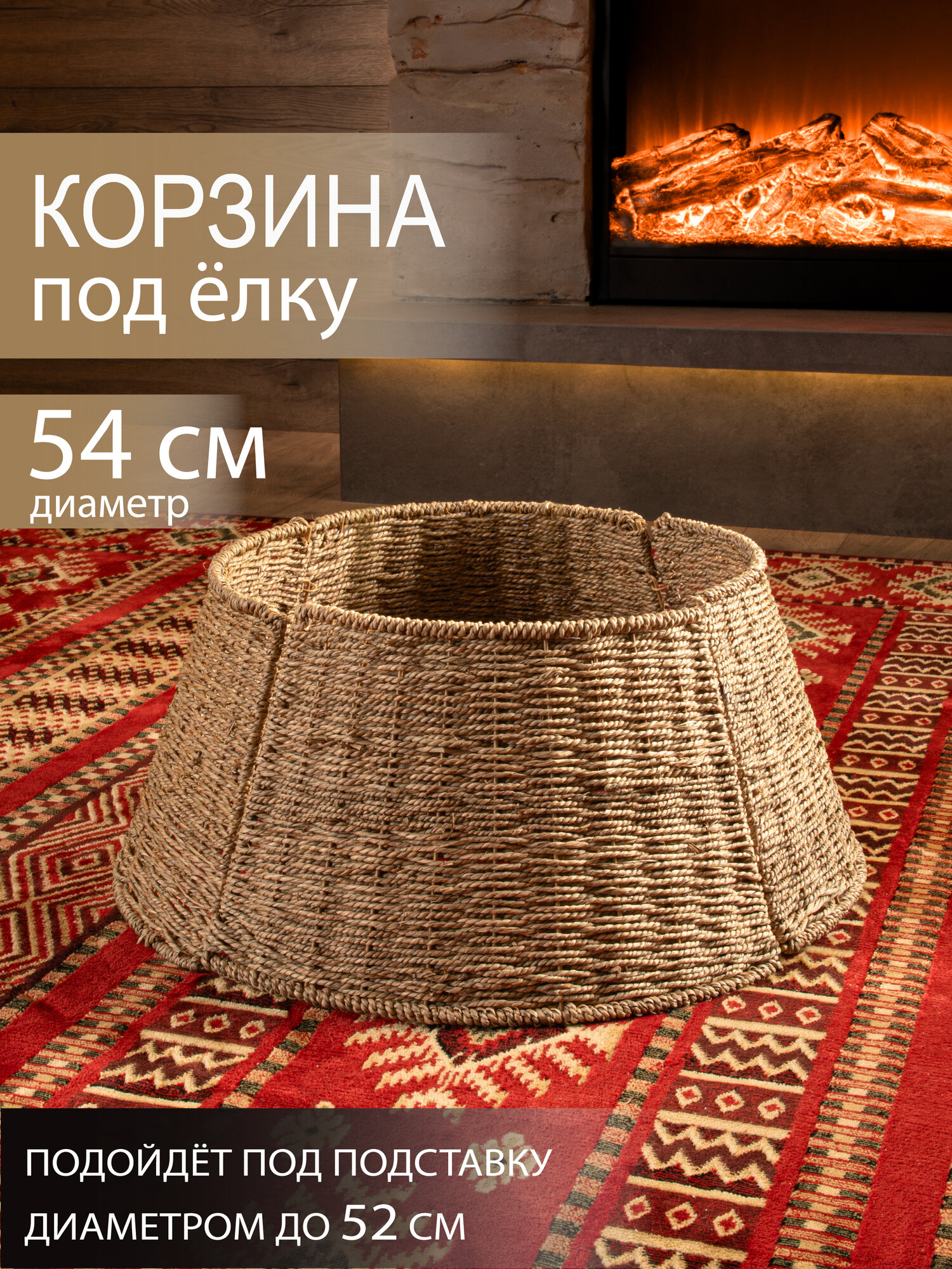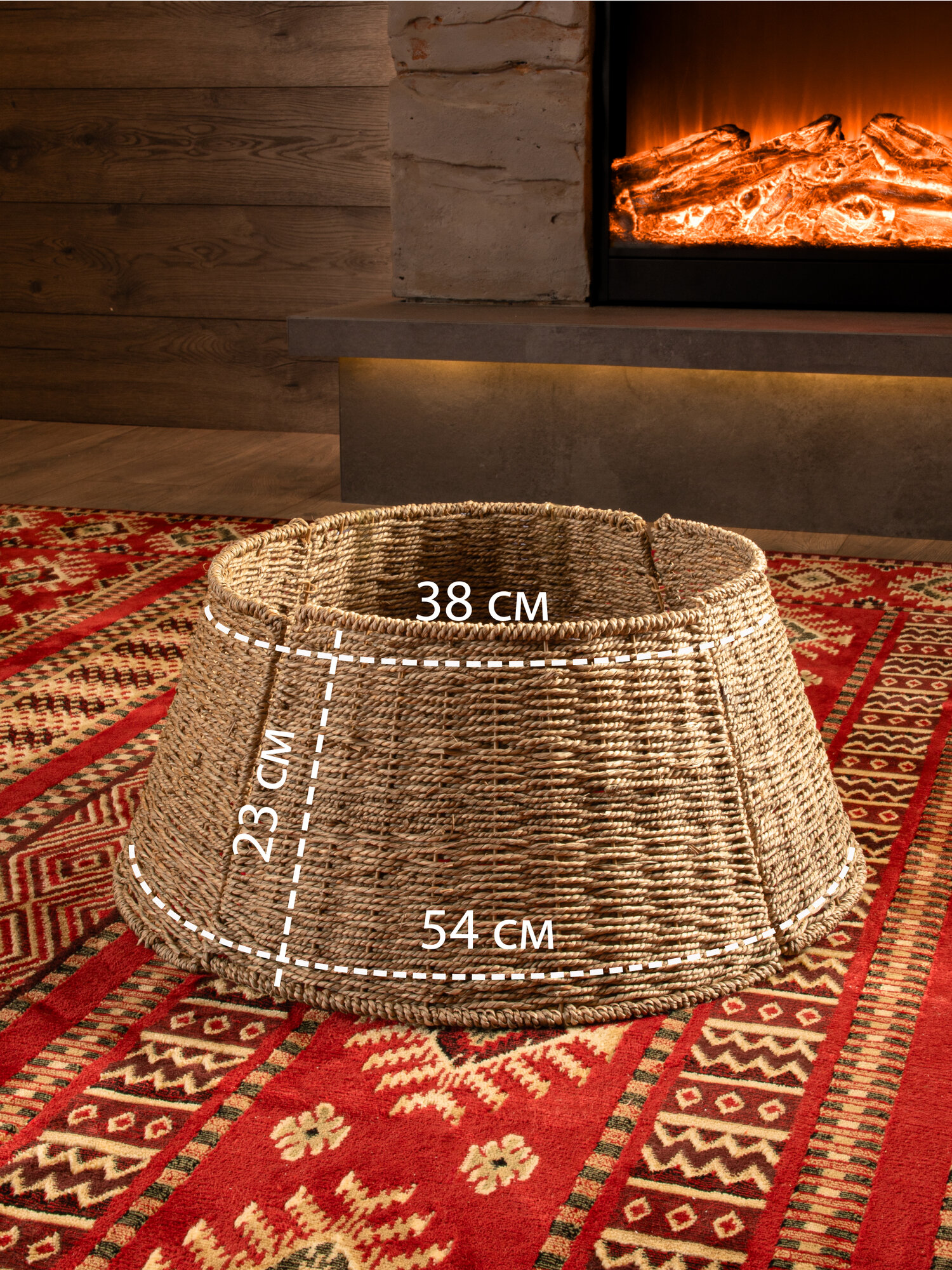Как скрыть некрасивое основание искусственной елки? У нас есть решение! Плетеная корзина-юбка не только стильный рождественский аксессуар, но и изысканное решение спрятать некрасивую основу у ели. Корзина-юбка имеет диаметр 54 см и подходит для подставок диаметром до 52 см. Ее размеры составляют: диаметр основания - 54 см, диаметр верхней части - 38 см, высота - 23 см. Цвет корзины — бежевый. Юбка для елки сделана из натуральных материалов и не взывает аллергии. Новогоднее украшение для дома отлично подойдет как для искусственных, так и для живых деревьев. Установка плетеной корзины без дна не требует дополнительных усилий просто соедините 4 части конструкции между собой. Затем разместите елку на подставке внутри корзины и наслаждайтесь её праздничным образом. Мы рекомендуем сначала установить корзину, а затем аккуратно поместить внутрь нее подставку с собранными нижними ветками. После этого завершите сборку елки. Так вы легко скроете основание и придадите всей конструкции нарядный вид. Плетеная подставка корзина для елки подходит для деревьев любой высоты, однако перед заказом убедитесь, что размеры подставки совпадают. Выберите подходящий вариант среди нашего ассортимента. Чтобы ознакомиться с полной линейкой товаров, нажмите на логотип и перейдите в наш магазин.