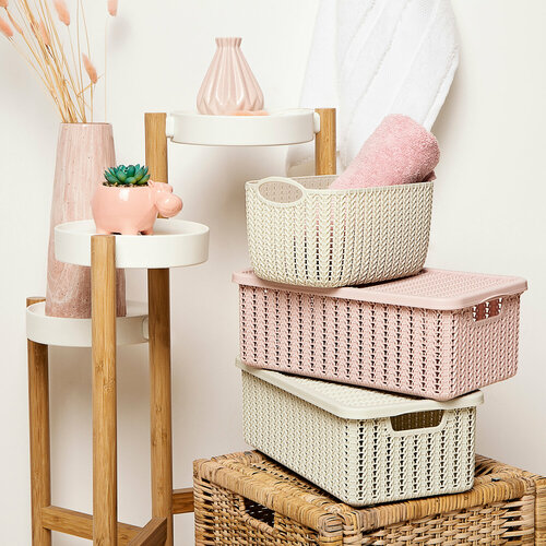 Корзинка Idea с нежной вязаной текстурой украсит интерьер и послужит удобным местом хранения. Изготовлены из безопасной пищевой пластмассы, поэтому отлично подходят для хранения детских вещей, сервировки печенья и конфет, хранения одежды, игрушек и предметов гигиены. Гладкая поверхность не поцарапает даже самые нежные ткани. Благородные пастельные оттенки прекрасно сочетаются друг с другом.
