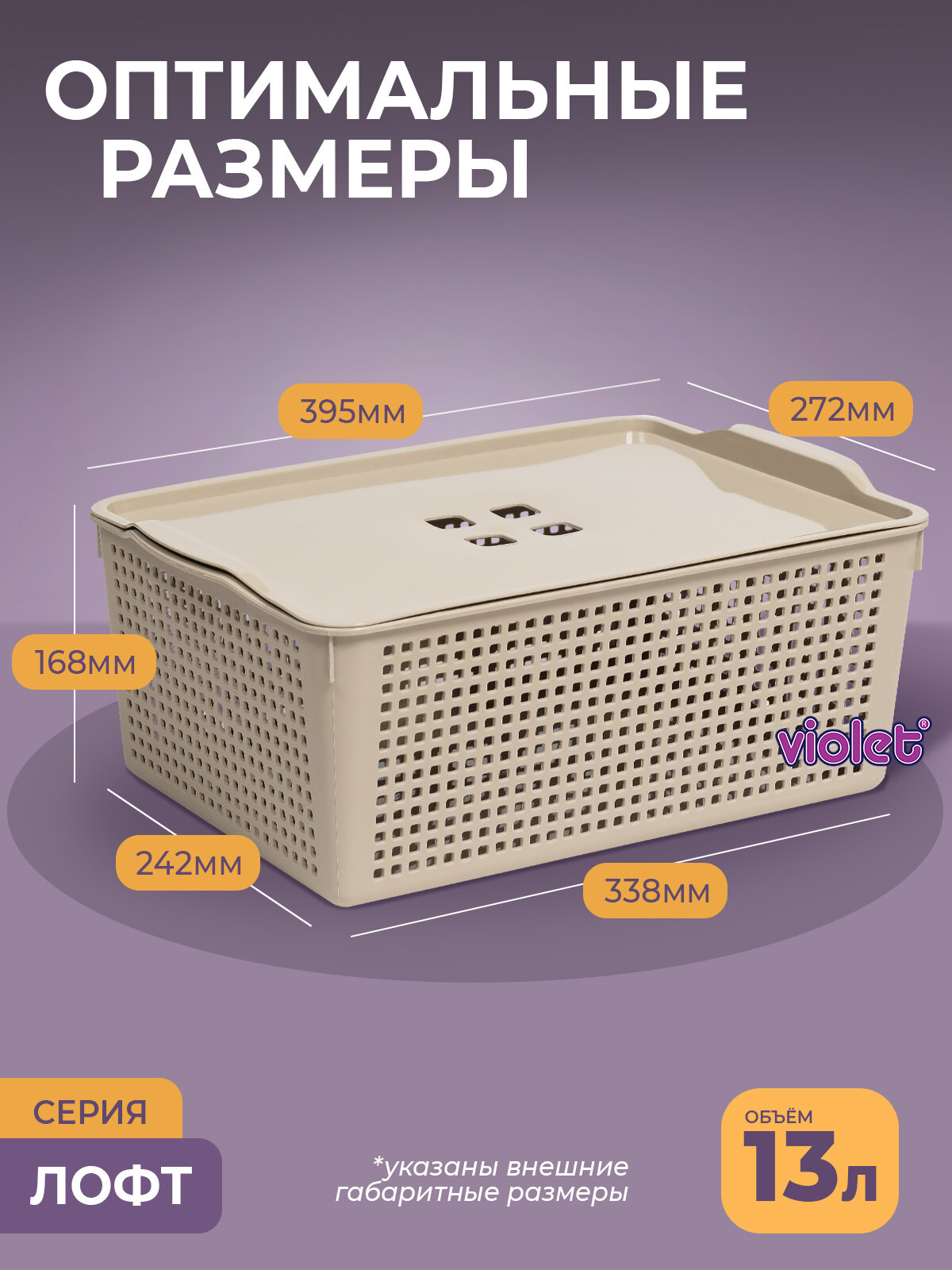 Купить Корзинка для хранения вещей с крышкой для ванной комнаты 13л Лофт, цвет латте с доставкой по всей России.