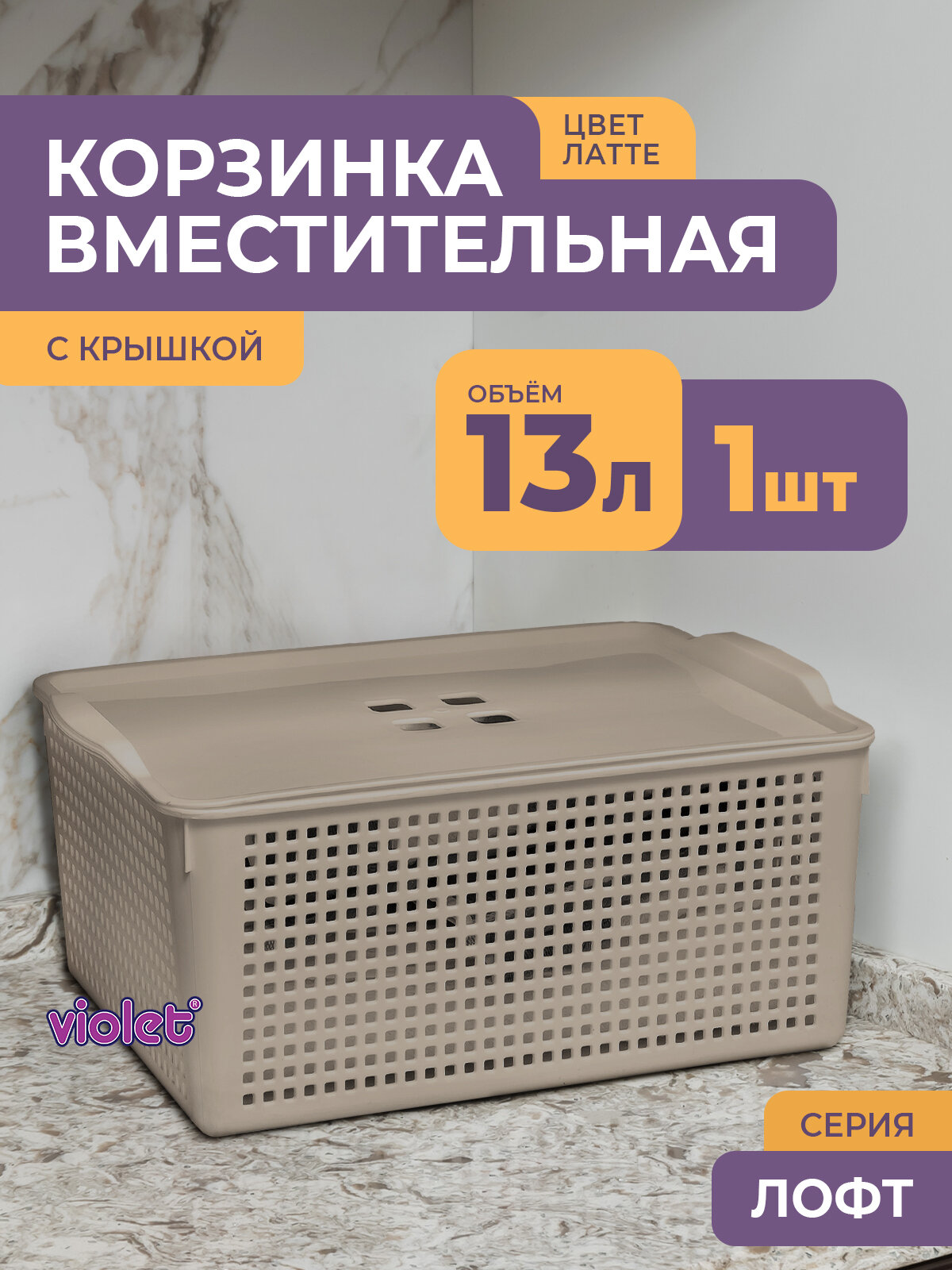Корзинка для хранения вещей с крышкой для ванной комнаты 13л Лофт, цвет латте: сравнение цен, характеристики, фото, актуальное наличие и цены.