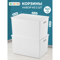 Купить Корзинка, коробка для хранения, с крышкой 2 шт Береста 14 л EL Casa, цвет белый, набор с доставкой по всей России.