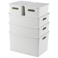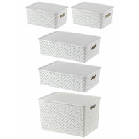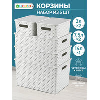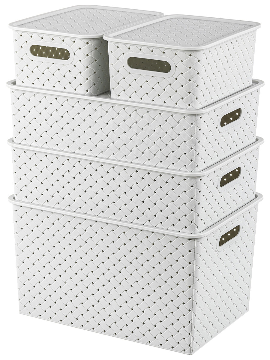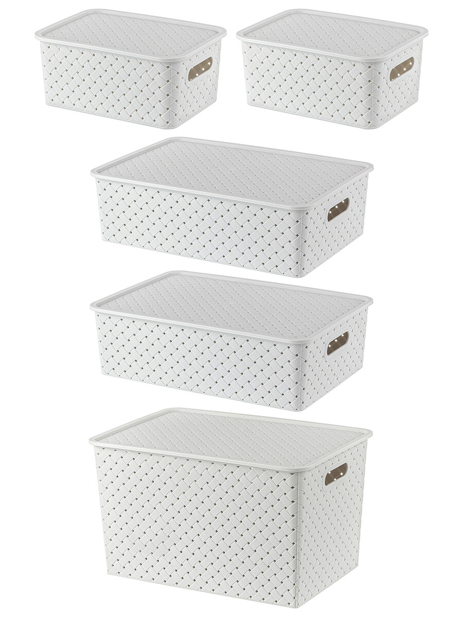Купить Корзинка, коробка для хранения, с крышкой 5шт Береста 3 л (2 шт), 7,5 л (2 шт), 14 л EL Casa, цвет светло-серый, набор с доставкой по всей России.