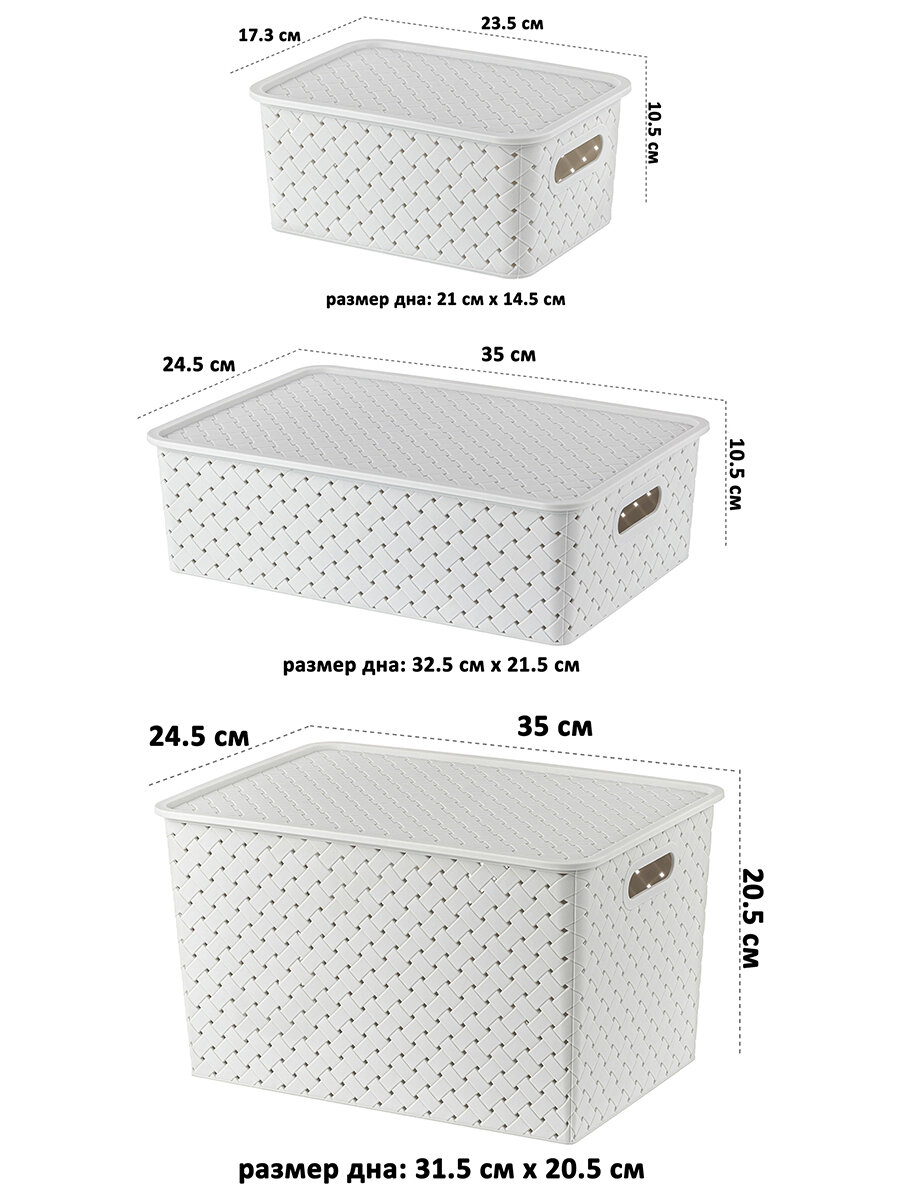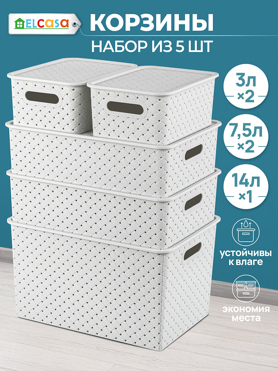 Корзинка, коробка для хранения, с крышкой 5шт Береста 3 л (2 шт), 7,5 л (2 шт), 14 л EL Casa, цвет светло-серый, набор: сравнение цен, характеристики, фото, актуальное наличие и цены.