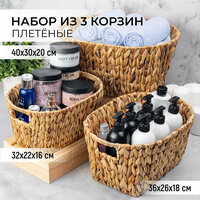 Набор 3 плетеных корзинок 40*30*20 см с ручками, 1 корзинка - 40*30*20 см, 1 корзинка - 36*26*18 см, 1 корзинка - 32*22*16 см