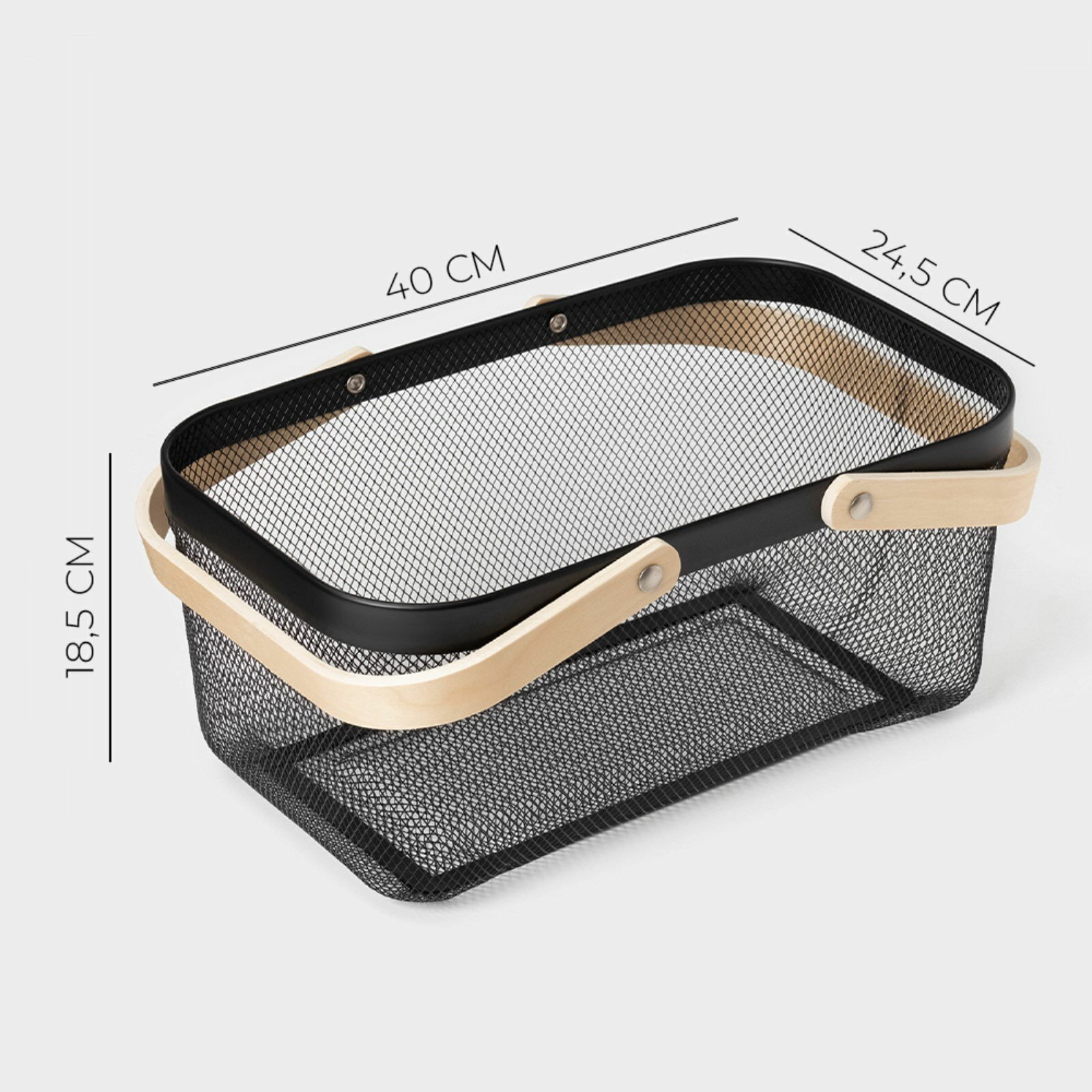 Артикул: 1903-310. Размеры: 18.5 x 24.5 x 40 см, Материал: Металл, Вес: 650 гр, Форма: Прямоугольная, Ширина, см: 24.5, Размер упаковки: 26.5 x 18.5 x 42.5 см, Набор: Нет, Высота, см: 18.5, Количество секций: 1, Количество ячеек: 1, Количество отделений: 1, Крышка: Нет, Цвет: Чёрный, Рисунок: Нет, Основной материал: Металл, Назначение: Для домашних мелочей. Погрузитесь в мир стиля и порядка с уникальной прямоугольной корзинкой черного цвета! Этот стильный аксессуар не только украсит ваш интерьер, но и станет вашим надежным помощником в организации пространства. С размерами 40 см в ширину, 24,5 см в глубину и 18,5 см в высоту, она идеально подходит для хранения самых разных домашних мелочей от игрушек до канцелярии. Изготовленная из прочного металла, данная корзинка подарит вам долговечность и надежность на долгое время. Чёрный цвет придает ей элегантность и универсальность, позволяя легко сочетать её с любым стилем интерьера. Стильный дизайн: Элегантный черный цвет и лаконичные формы делают корзинку модным акцентом в вашем доме. Прочность и надежность: Металлический материал гарантирует, что корзинка выдержит всё от мелких предметов до более тяжёлых аксессуаров. Максимальная эффективность: Одна секция и одно отделение позволяют легко организовать хранение и быстро находить нужные вещи. Экономия пространства: Прямоугольная форма идеально вписывается в углы и на полки, что позволяет эффективно использовать любое пространство. Легкость в уходе: Простая конструкция позволяет легко очищать корзинку от пыли и загрязнений, делая её идеальным аксессуаром для вашего дома. Выбор этой корзинки это шаг к упорядоченности и уюта в вашем доме. Позвольте организованности войти в вашу жизнь и создайте пространство, где каждую мелочь легко найти.