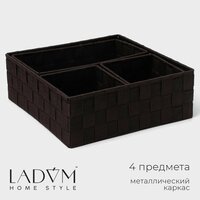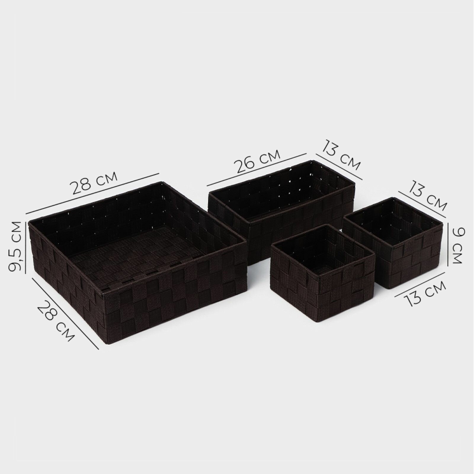Набор корзин для хранения ручного плетения, пластик,4 шт. от 13х13х9см до 28х28х10см