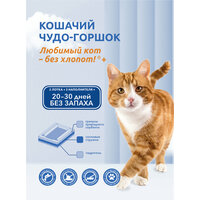 20-30 дней без кошачьего запаха, избавление от таких неприятных процедур, как освобождение кошачьего лотка от использованного наполнителя для кошачьего туалета, его чистка и мытье перед следующей засыпкой кошачьего наполнителя. Вместо этого через 20-30 дней использованный туалет для кошек выбрасывается и на его место ставится новый. Но и это не все!