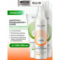 Набор для объема волос OLLIN PROFESSIONAL Care восстанавливающий: шампунь, кондиционер и спрей, 2*250+200 мл