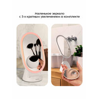 Зеркало увеличительное с подсветкой, двустороннее, 10х и 1х, розовое золото
