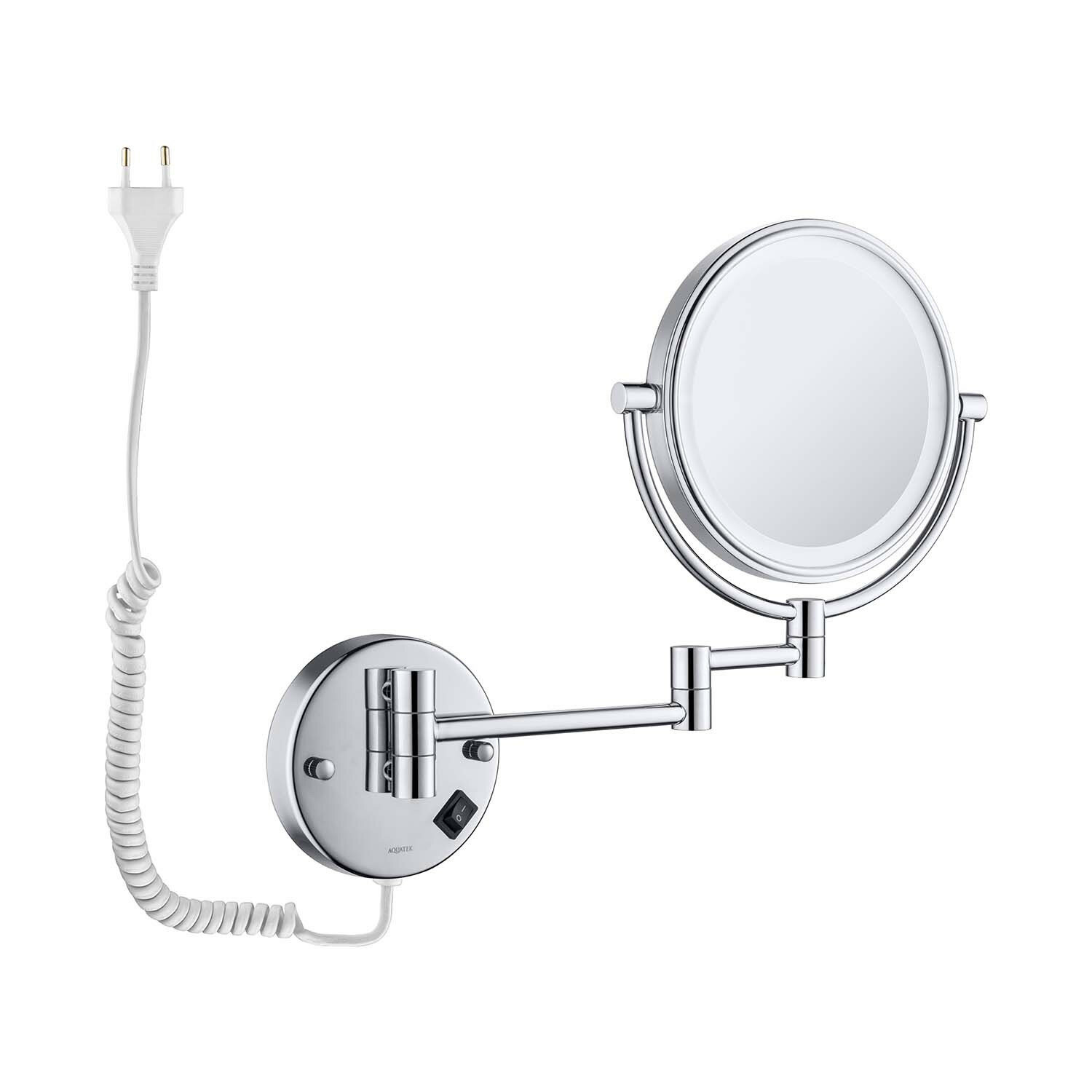 - Материал: латунь - LED подсветка, белый свет 6400К - первая сторона - увеличение 5х - вторая сторона - обычное зеркало - Белая вилка и провод - Упаковано в белую коробку - Размеры: 257X257х314 мм