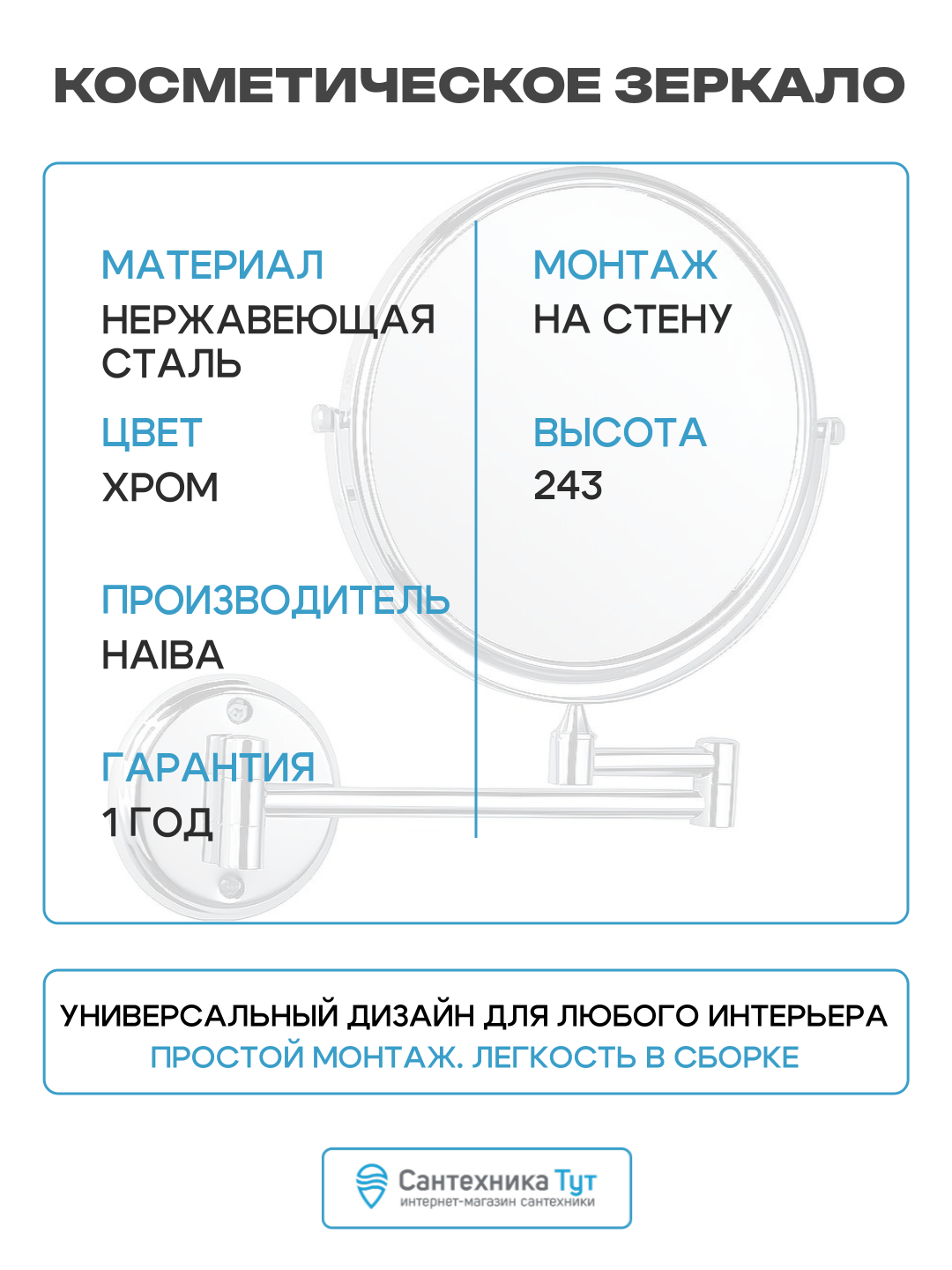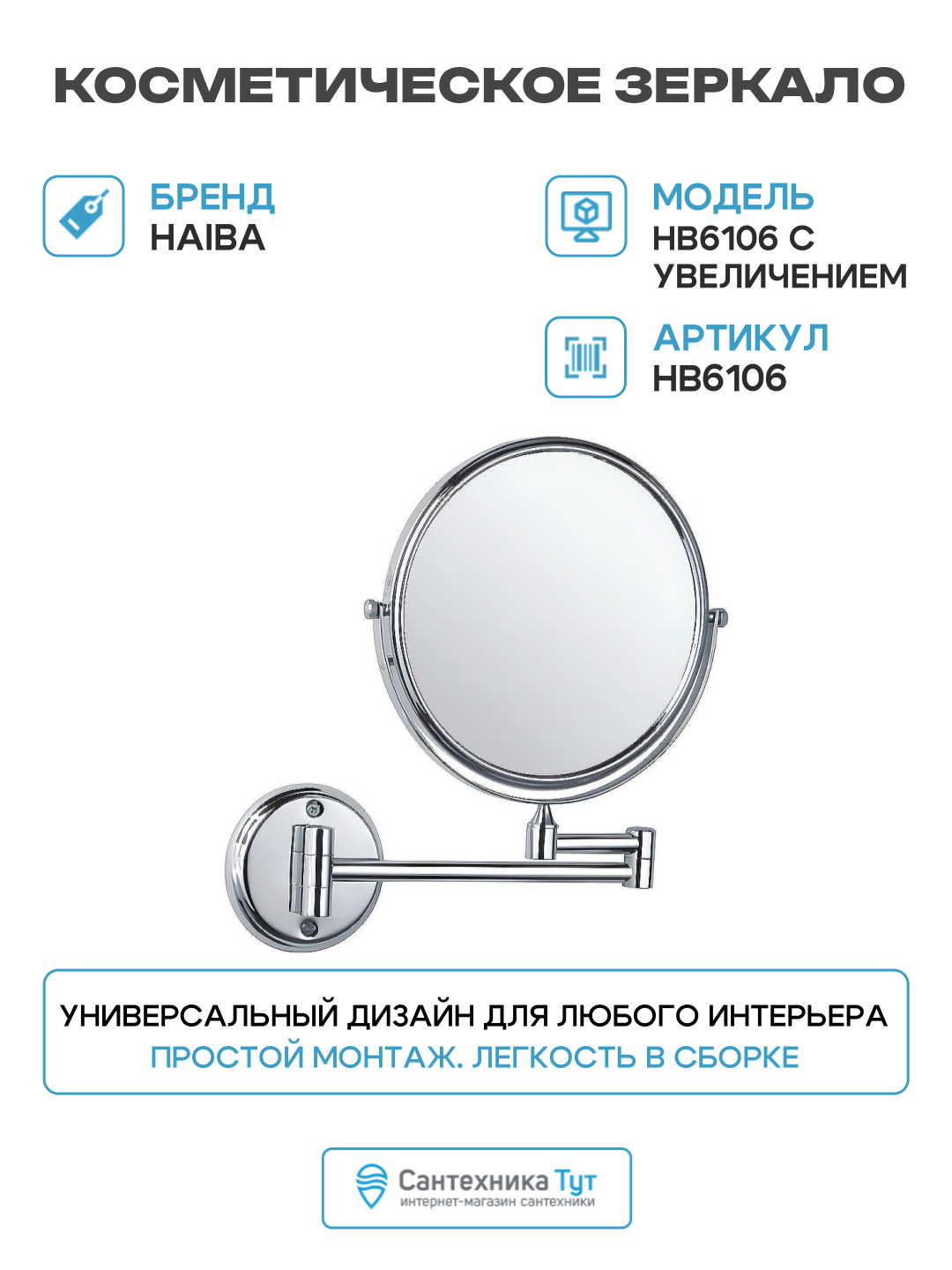 Купить Косметическое зеркало Haiba HB6106 с увеличением Хром, современный стиль с доставкой по всей России. Косметическое зеркало Haiba HB6106 с увеличением Хром, современный стиль: сравнение цен, характеристики, фото, актуальное наличие и цены.