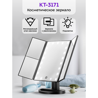| Дополнительная информация | Зеркало состоит из центральной части и двух створок, что позволяет видеть себя с трех сторон. В центральной части находится большое зеркало без увеличения с подсветкой, а в левой и правой створках - зеркала с 2х и 3х кратным увеличением соответственно. Регулировка наклона зеркала позволяет настроить его для удобного и комфортного использования. Просто удерживая основание зеркала, наклоняйте его за верхнюю часть для установки нужного угла. Контурная подсветка зеркала обеспечивает хорошую видимость даже в условиях недостаточного освещения. Подсветка может быть отключена или настроена по яркости с помощью кнопки "Вкл/Выкл". У подставки зеркала есть бортики, на которых можно хранить небольшие аксессуары или косметологические инструменты. Зеркало работает от USB-порта или от 4 батареек типа ААА, что позволяет использовать его в любом удобном месте без привязки к источнику питания. Корпус зеркала выполнен из пластика, что делает его легким и прочным. Цвет корпуса - черный. |