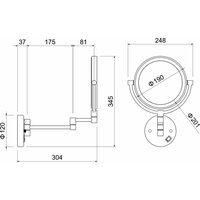 Настенное косметическое зеркало Aquatek с подсветкой и 5-ти кратным увеличением. Двухсторонняя конструкция - одна сторона зеркала с увеличением, другая без. Двухсекционный кронштейн и поворотный механизм делают использование зеркала лёгким и комфортным. Яркая подсветка (холодный свет) облегчает нанесение макияжа. Материал корпуса зеркала - латунь, окрашенная износостойкой матовой эмалью чёрного цвета. Питание от сети переменного тока 220В/50 Гц, подключение открытой проводкой (витой шнур с вилкой).