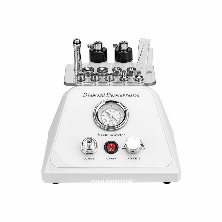 Аппарат представляет собой косметическое оборудование для процедуры микродермабразия (алмазный пилинг), вакуумной чистки и дополнительной функции спрея. Функции1. Алмазный пилинг;2. Спрей;3. Вакуумная чистка. Микродермабразия (алмазный пилинг). Метод заключается в обработке кожных покровов при помощи небольших насадок, опыленных сверху мельчайшей алмазной крошкой. Благодаря этому процедура является одним из самых щадящих. Поэтому данная процедура подходит для шлифовки тонкой и чувствительной области лица – под глазами, вокруг рта и возле губ. Данная косметологическая процедура прекрасно отшелушивает верхние, ороговевшие слои клеток, сужает поры, шлифуя кожу и разглаживая морщинки, в результате чего она приобретает здоровый внешний вид. Вакуумная чистка-это косметологическая процедура, благодаря которой проводится эффективная очистка верхних слоев кожи с помощью вакуума. Вследствие воздействия вакуума происходит глубокое очищение пор и удаление загрязненных роговых чешуек. Введенные сыворотки улучшают микроциркуляцию, усиливают обменные процессы в коже, стимулируют лимфодренаж и оказывают лифтинговый эффект. Спрей. Осуществляется обработка кожи струей специальной сыворотки, в результате чего происходит насыщение тканей и клеток витаминами и микроэлементами. Полезные вещества с помощью направленной струи воздуха, подаваемого под давлением, проникают в глубокие кожные слои, улучшая обменные процессы. В результате применения методики происходит коррекция мимических морщин, профилактика акне, осветление пигментации, снятие отеков и темных кругов под глазами, увлажнение сухой и омоложение увядающей кожи.