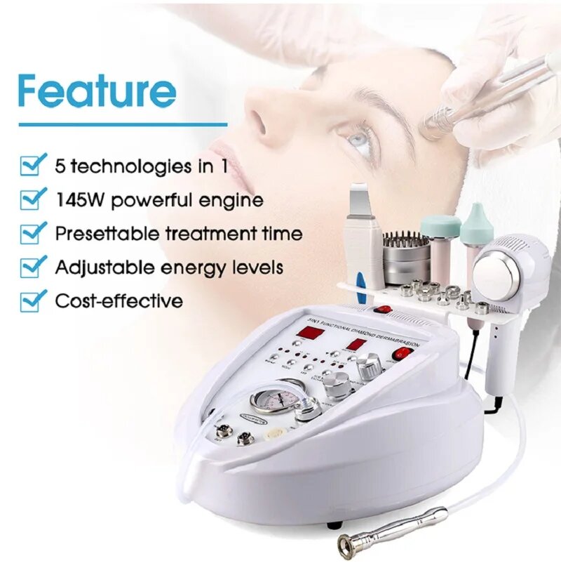 Аппарат алмазной дермабразии NOVA NV-905 косметологический комбайн - это многофункциональный и эффективный косметологический аппарат по привлекательной цене. Функции аппарата: алмазная микродермобразия; ультразвуковой лифтинг фонофорез ; уз чистка пилинг, скраббер скрабер; светотерапия (фотон); терапия "тепло-холод". Процедура микродермабразии - это микрошлифовка и глубокий пилинг кожи, вернет коже былую упругость, эластичность и здоровый ухоженный вид. УЗ-пилинг эффективен при угрях и камедонах, гиперпигментации, мелких морщинах, обезвоженной и ороговевшей кожи, нездоровом цвете лица. Уже после первых процедур улучшается цвет лица, спадает отечность, происходит регенерация кожных покровов. Светотерапия используется для лечения акне, герпеса, ожогов. Холодная функция используется как заключительная процедура после пилинга, аппарат гидропилинга H2O2 h2-o2 , после чистки, рф rf лифтинг аппарат мезотерапии, успокаивает кожу лица, шеи и декольте. Горячая функция используется как предварительная процедура перед уз чисткой лица или уходом, для расширения пор, для улучшения проникновения косметических средств.