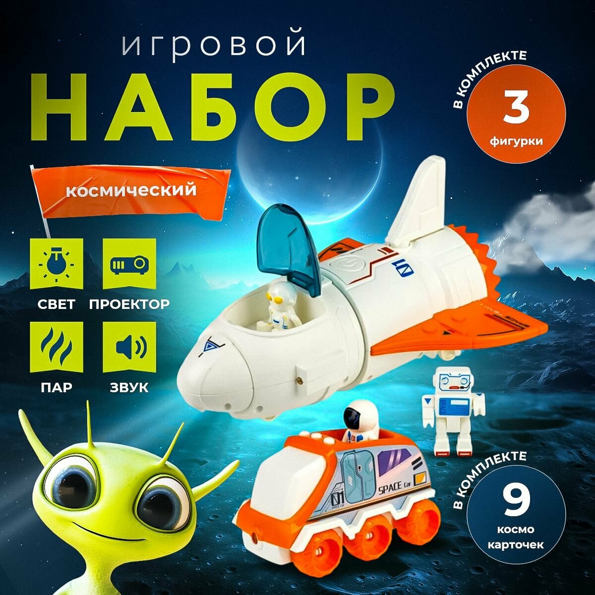 Купить Космический набор WiMi с луноходами и фигурками космонавтов, детский игровой набор с карточками планет и планетоходом с доставкой по всей России.