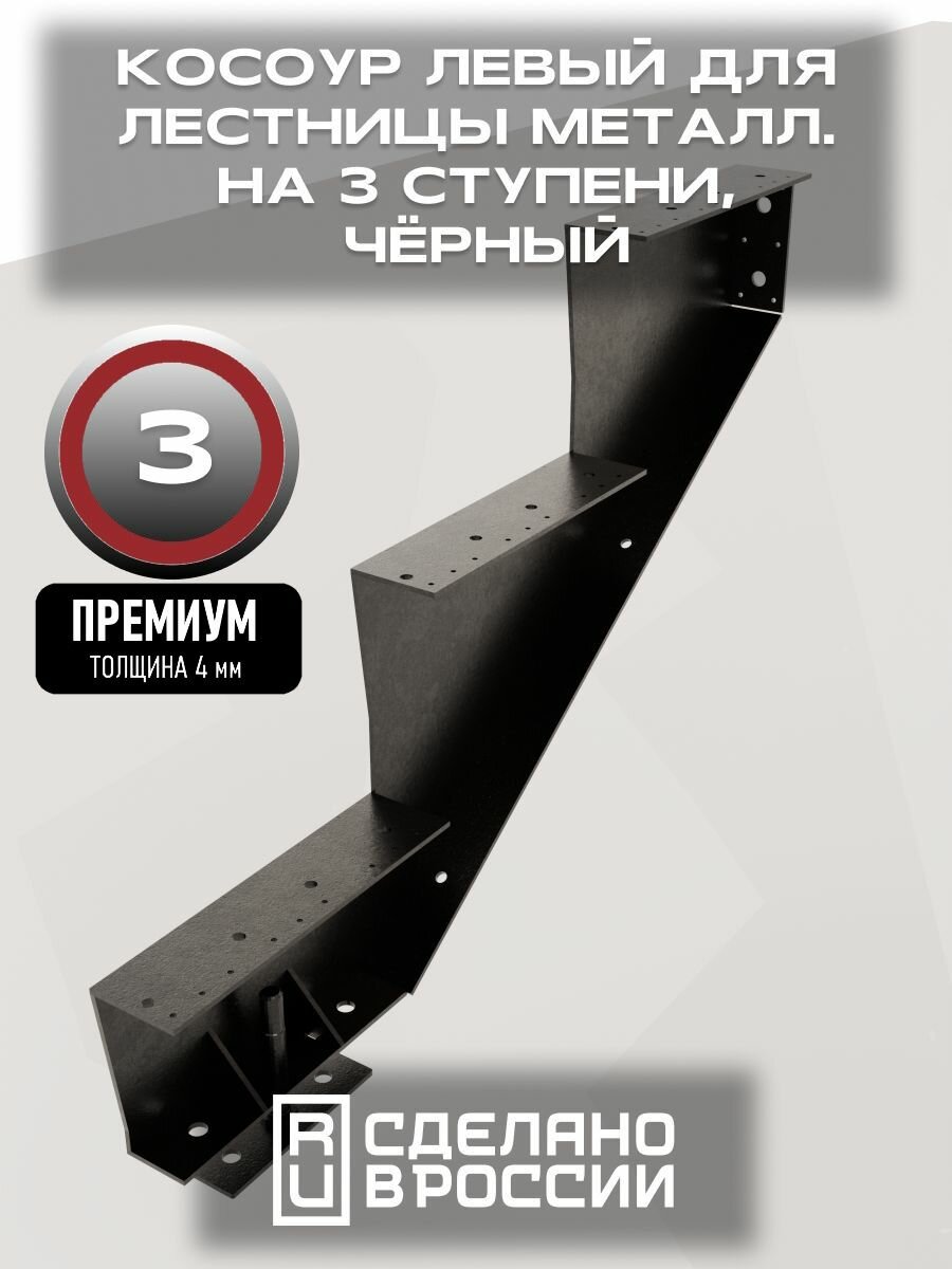 Купить Косоур левый для лестницы Премиум на 3 ступени, чёрный с доставкой по всей России.