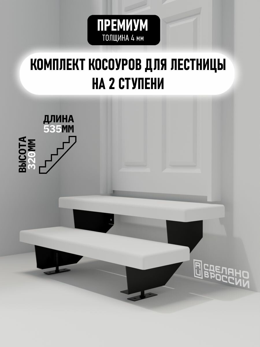 Надежный каркас лестницы из стали марки Ст3 (4 мм) обеспечивает долговечность и устойчивость. Косоуры лестницы окрашены порошковой краской в цвет «Черный муар», защищая от коррозии. Эта металлическая лестница идеально подходит для крыльца к дому, беседок и бань.