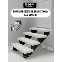 Косоуры для лестницы Премиум на 4 ступени, чёрный