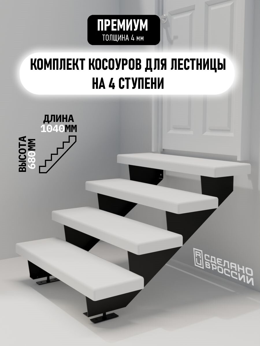 Купить Косоуры для лестницы Премиум на 4 ступени, чёрный с доставкой по всей России.