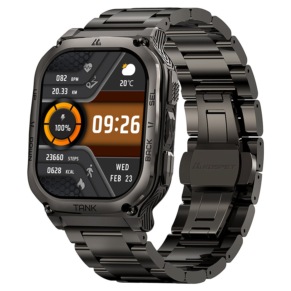 KOSPET TANK M3 умные/смарт часы Мужские часы военного образца, Поддержка вызовов по Bluetooth, которые поддерживают погружения на глубину до 50 метров и работают в режиме ожидания до 60 дней.100+ спортивных режимов. С металлическим браслетом