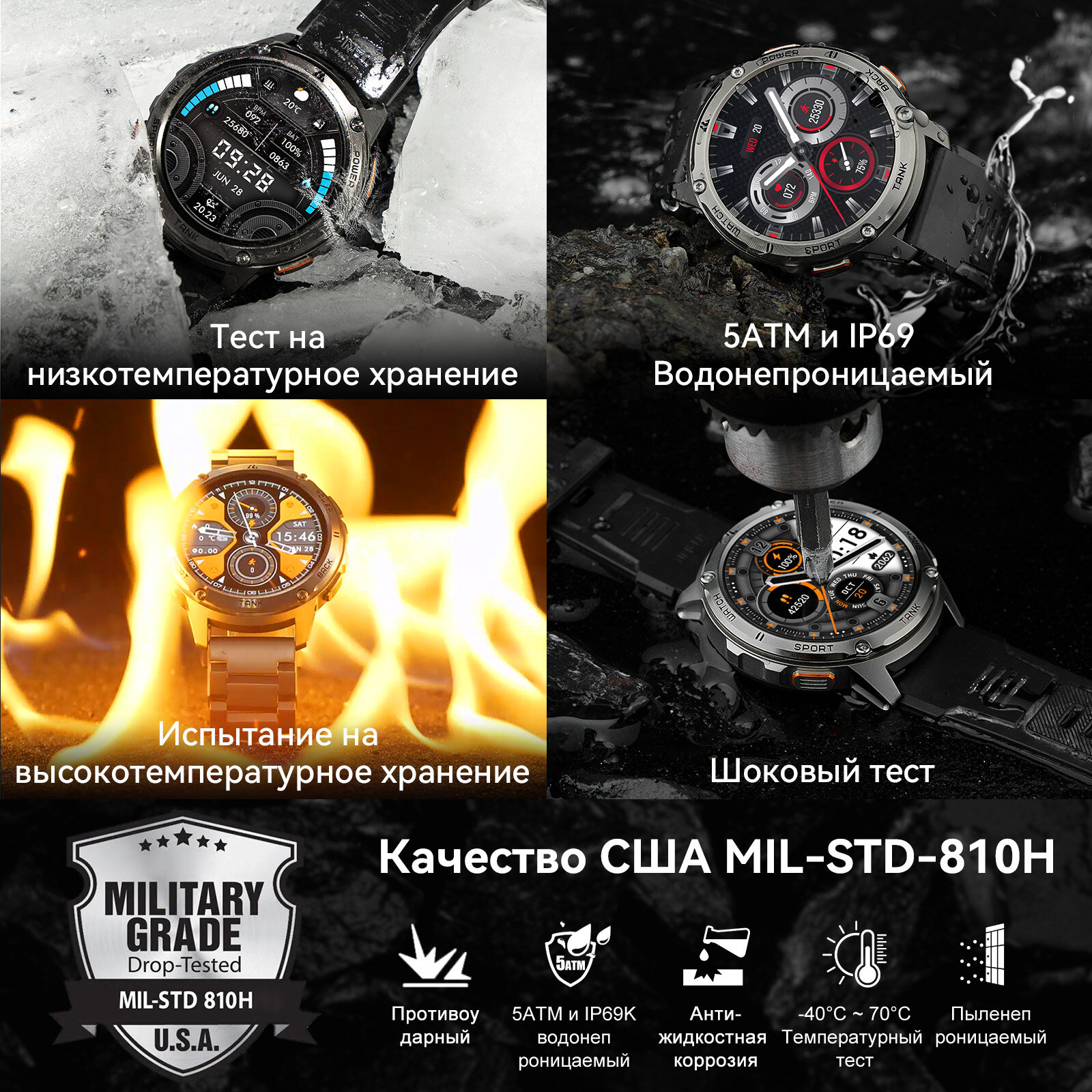 Купить KOSPET TANK T3 умные/смарт часы Мужские часы военного образца, Поддержка вызовов по Bluetooth, которые поддерживают погружения на глубину до 50 метров и работают в режиме ожидания до 60 дней.100+ спортивных режимов с доставкой по всей России.