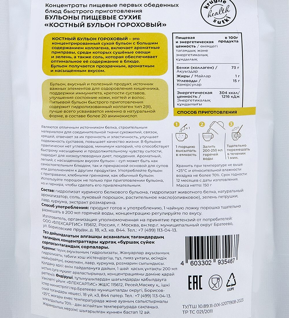 Купить Костный бульон гороховый 150 гр A2183392 с доставкой по всей России.