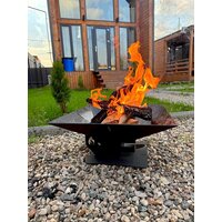 Костровая чаша с подставкой для шампуров — надежный и долговечный аксессуар для уютных вечеров у огня. Изготовлена из жаропрочной стали толщиной 3 мм (дно и стенки), благодаря чему не прогорит и сохранит форму на долгие годы. В центре чаши предусмотрено удобное отверстие для удаления золы и пепла, закрывающееся крышкой-поддувалом. В комплект также входит зольник (не представлен на фото) и удобная шампурница — приятный бонус к покупке! Чаша покрыта термостойкой порошковой краской чёрного цвета, выдерживающей температуру до 1200 °C. Это покрытие не только не сгорает, но и эффективно защищает металл от коррозии. Размеры изделия: Диаметр чаши — 50×50 см Высота с ножкой и подиумом — 22,5 см Глубина очага — 15 см Уход предельно простой: как и за мангалом, чаша не требует мытья — достаточно просто стряхнуть остатки. Важно: при первом использовании рекомендуется разжечь небольшой огонь из щепок и дров для закалки стали. После этого можно использовать чашу на полную мощность. Рисунок на чаше выполнен с высокой точностью на лазерном станке — каждый элемент аккуратно вырезан и подчёркивает эстетичность изделия.