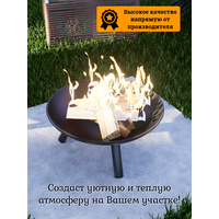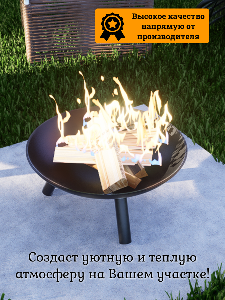 Костровая чаша "флейм" без подставки - это не только стильный элемент сада, дачного участка или придомовой территории, но и практичный полезный аксессуар. С помощью чаша для костра можно погреться у открытого огня, понаблюдать за танцем пламени или приготовить полезные и вкусные блюда. Очаг для костра создаст для вас и ваших близких атмосферу уюта и тепла. У нас реальное, собственное производство! Изготовлена из жаропрочной стали, благодаря чему прослужит долгие годы и не прогорит. Диаметр чаши 51 см, глубина чаши 10 см, высота с установленными ножками 21,5 см. Не деформируется и окрашена, термостойкой краской черного цвета, которая выдерживает 1200 гр. по Цельсию, а также, не сгорает, а защищает костровую чашу от коррозии. В комплект входят 3 сборных ножки и комплект крепежа, но также, очаг можно установить на три камня любого размера (в комплект не входят!). Чаша костровая прослужит вам долгие годы. Уход за ней такой же, как и за мангалом, очень простой: нельзя мыть, просто стряхиваем. Внимание! При первом розжиге нужно использовать небольшое количество щепок и дров, чтобы чаша прошла закалку, затем можно использовать чашу в полную силу. Подставка вырезана на лазерном станке с высокой точностью и аккуратным качеством реза.