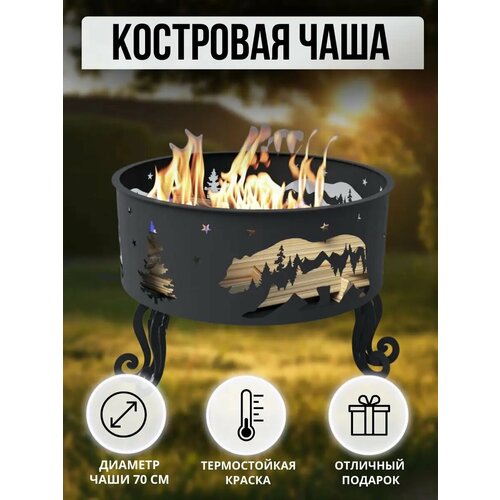 Костровая чаша "Мишка" - это не только стильный элемент сада, дачного участка или придомовой территории, но и практичный полезный аксессуар. С помощью чаша для костра можно погреться у открытого огня, понаблюдать за танцем пламени или приготовить полезные и вкусные блюда. Очаг для костра создаст для вас и ваших близких атмосферу уюта и тепла. Изготовлена из жаропрочной стали, благодаря чему прослужит долгие годы и не прогорит. Толщина дна 3 мм, толщина стенок 3 мм. Наверху очага установлено специальное кольцо для предотвращения деформации чаши, в середине имеется отверстие для более удобной уборки золы и пепла. В продаже имеется крышка для очага, она защитит вашу чашу от попадания дождя и различного мусора, тем самым, чаша будет меньше ржаветь и прослужит гораздо дольше. Очаг не деформируется и окрашен порошковой, термостойкой краской черного цвета, которая выдерживает 1200 гр. по Цельсию, а также, не сгорает, а защищает костровую чашу от коррозии. Диаметр чаши 70 см, высота с ножками 50 см. Прослужит вам долгие годы. Уход за ней такой же, как и за мангалом, очень простой: нельзя мыть, просто стряхиваем. Чаша для огня - это прекрасный подарок на 23 февраля папе, подарок мужчине на др, новоселье, день рождения папе, дедушке подарок мужчине коллеги и любым другим близким людям. Внимание! При первом розжиге нужно использовать небольшое количество щепок и дров, чтобы чаша прошла закалку, затем можно использовать чашу в полную силу. Рисунок чаши вырезан на лазерном станке с высокой точностью и аккуратным качеством реза.